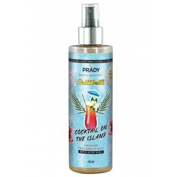 Bruma tanto para la piel como para el pelo de la marca prady, ideal para hidratarse y darle un toque brilli brilli a tu piel, con un aroma delicioso a cocktail