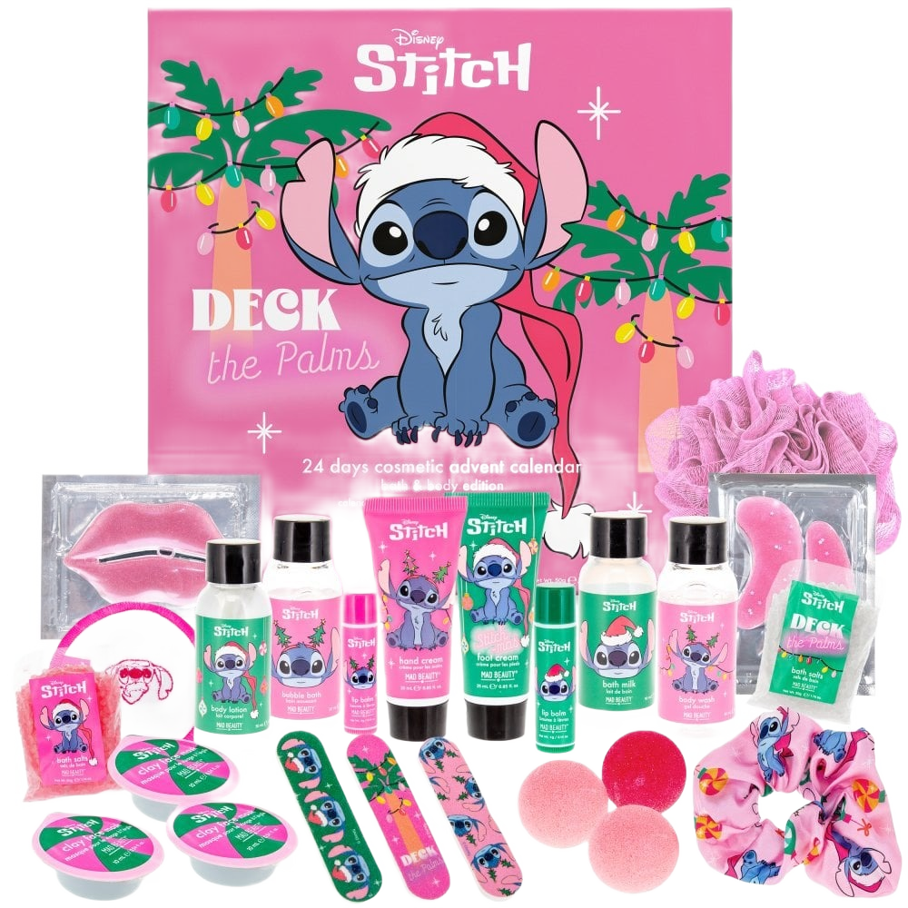 Repleto de lujosas sorpresas de baño y belleza, este calendario está inspirado en el adorable y travieso Stitch.