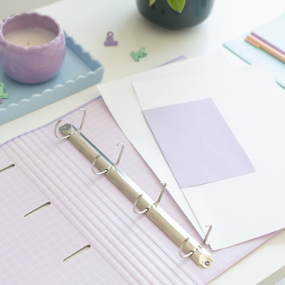 Esta carpeta de la colección Pusheen Moments está elaborada en tapa dura de cartón de 2 mm de grosor forrada con papel laminado en mate de 150 g/m2. Cuenta con 4 anillas de 35 mm cada una y cierre de banda elástica de 9 mm. El interior está personalizado con un diseño acorde al exterior. Tiene un tamaño de 32 cm de alto por 27,5 cm de ancho.
