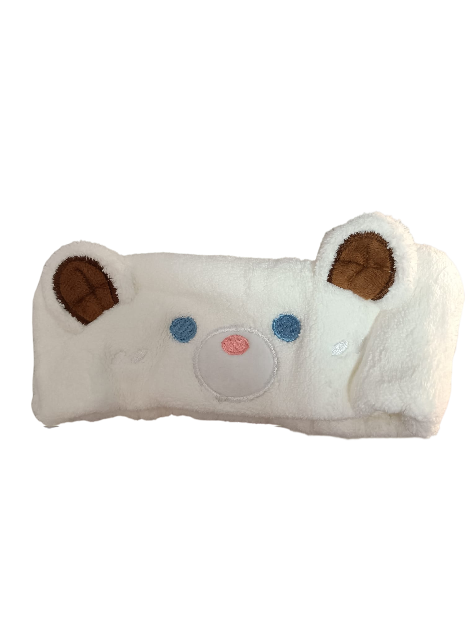 Eleva tu skincare a otro nivel con esta preciosa diadema de osito, blanca.