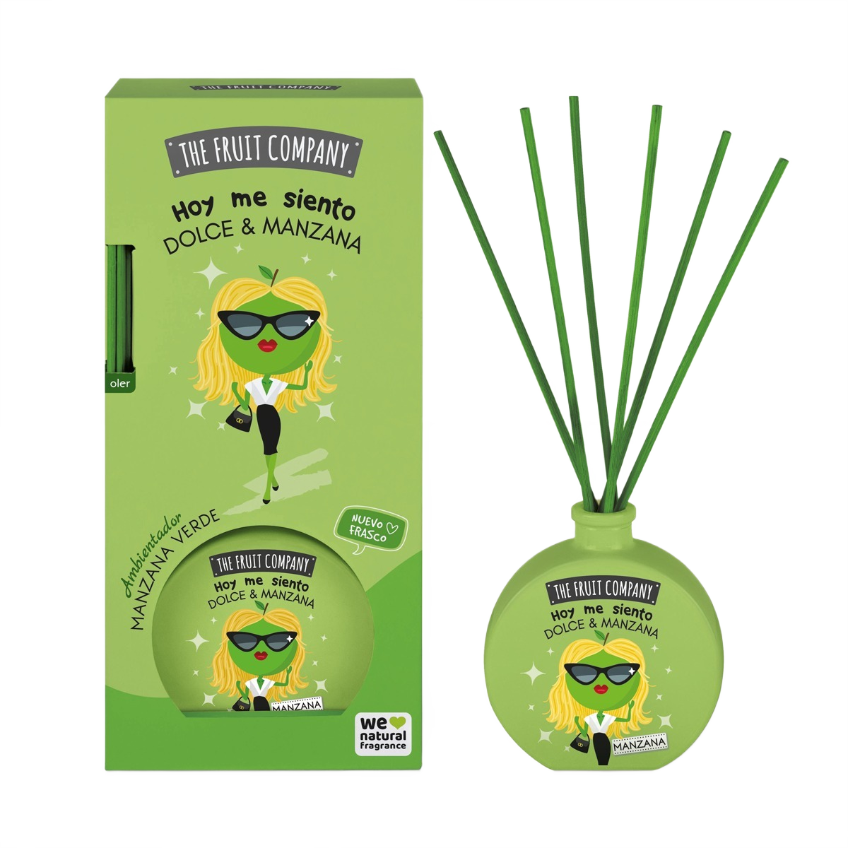 Ambientador de mikado con aroma a Manzana Verde y extractos naturales. 0% Alcohol.